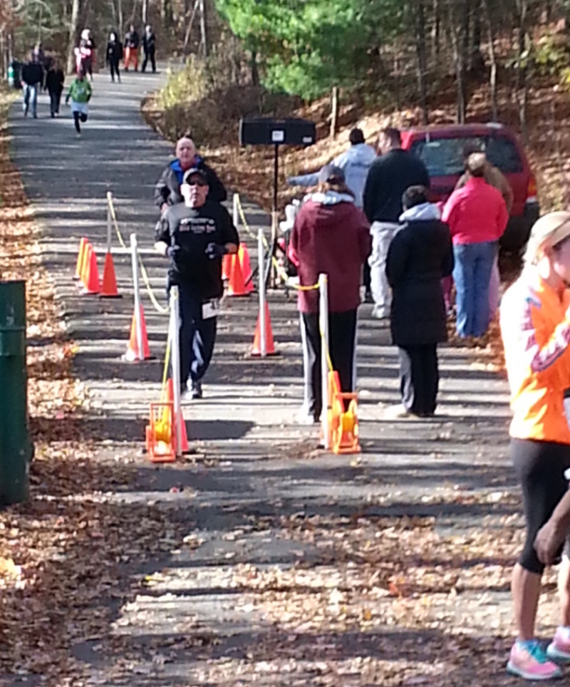 It was a cold autumn day with a light breeze and temps in the high 40’s. I did see plenty of people with young children, not sure why so many adults signed up but didn’t show up. The Y got to keep the registration fee which is good, and there was plenty of food for everyone who did show up.